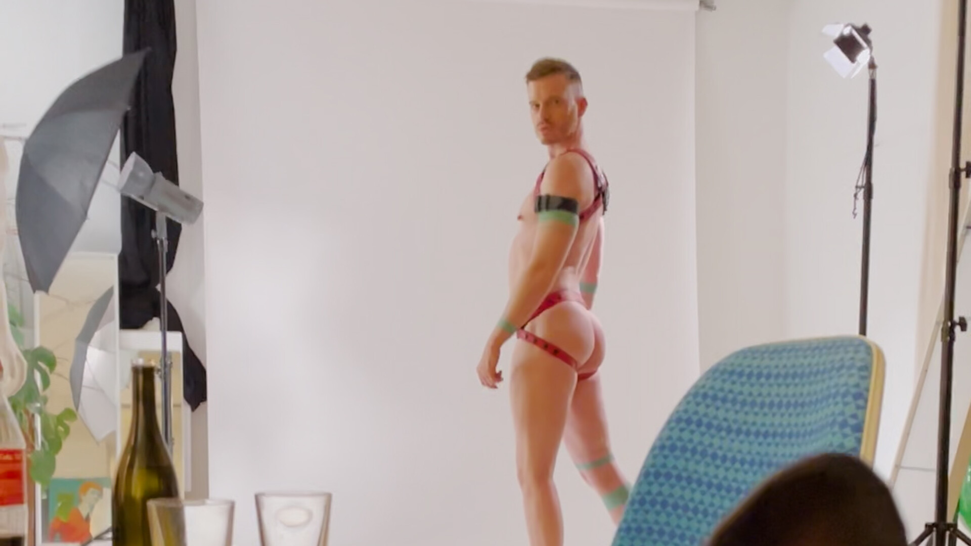 Axel Abysse models for Raf & Way’s camera in a promotional campaign for Army Of Men leather gear.