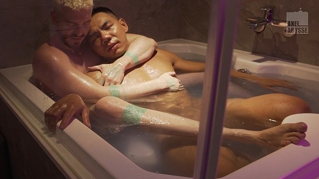 A relaxing time after a long day... Axel Abysse joins Roy Huang in the hot tub for a tender but steamy cuddle... It doesn't take long before Axel's fist slides inside that bubble butt...